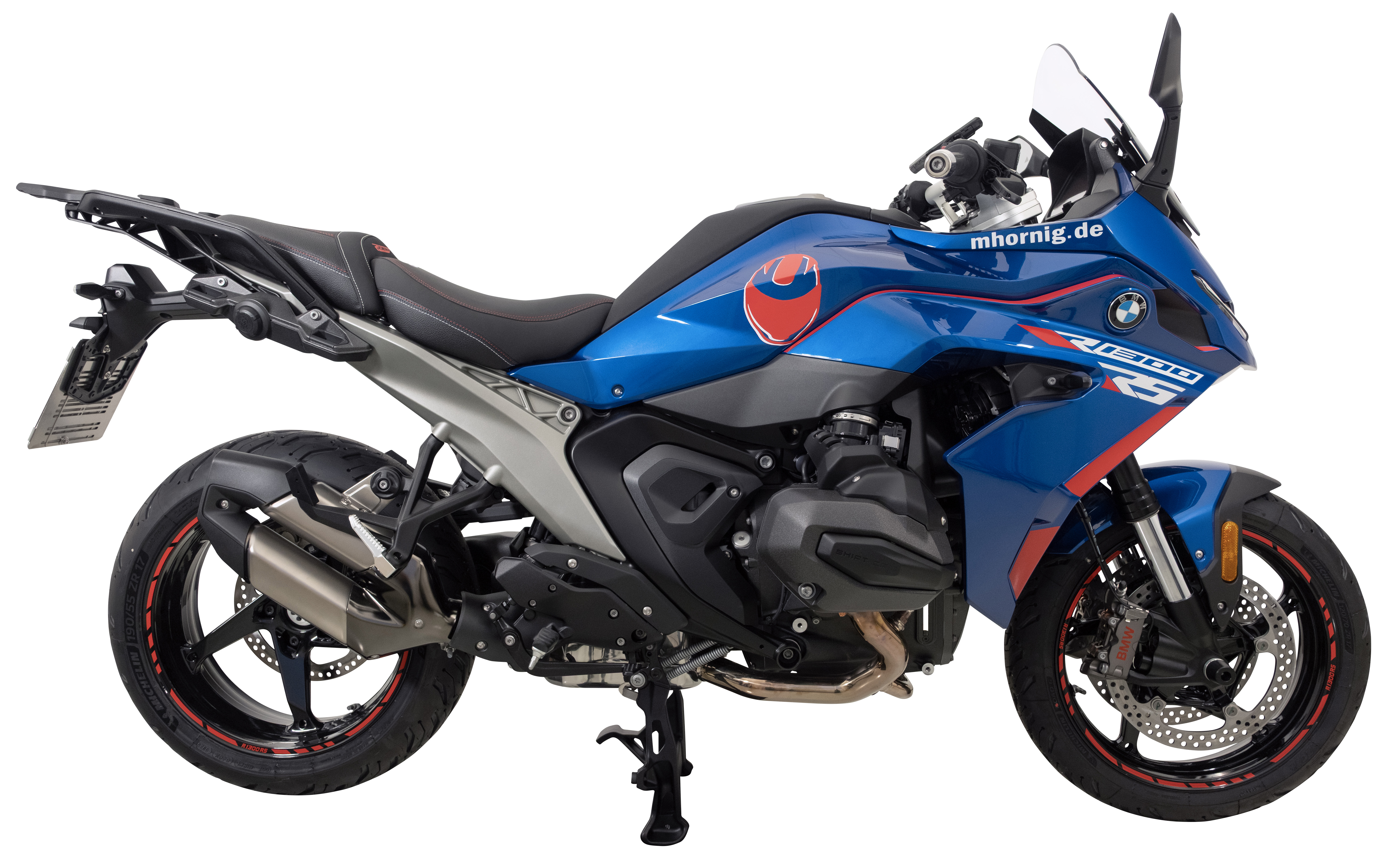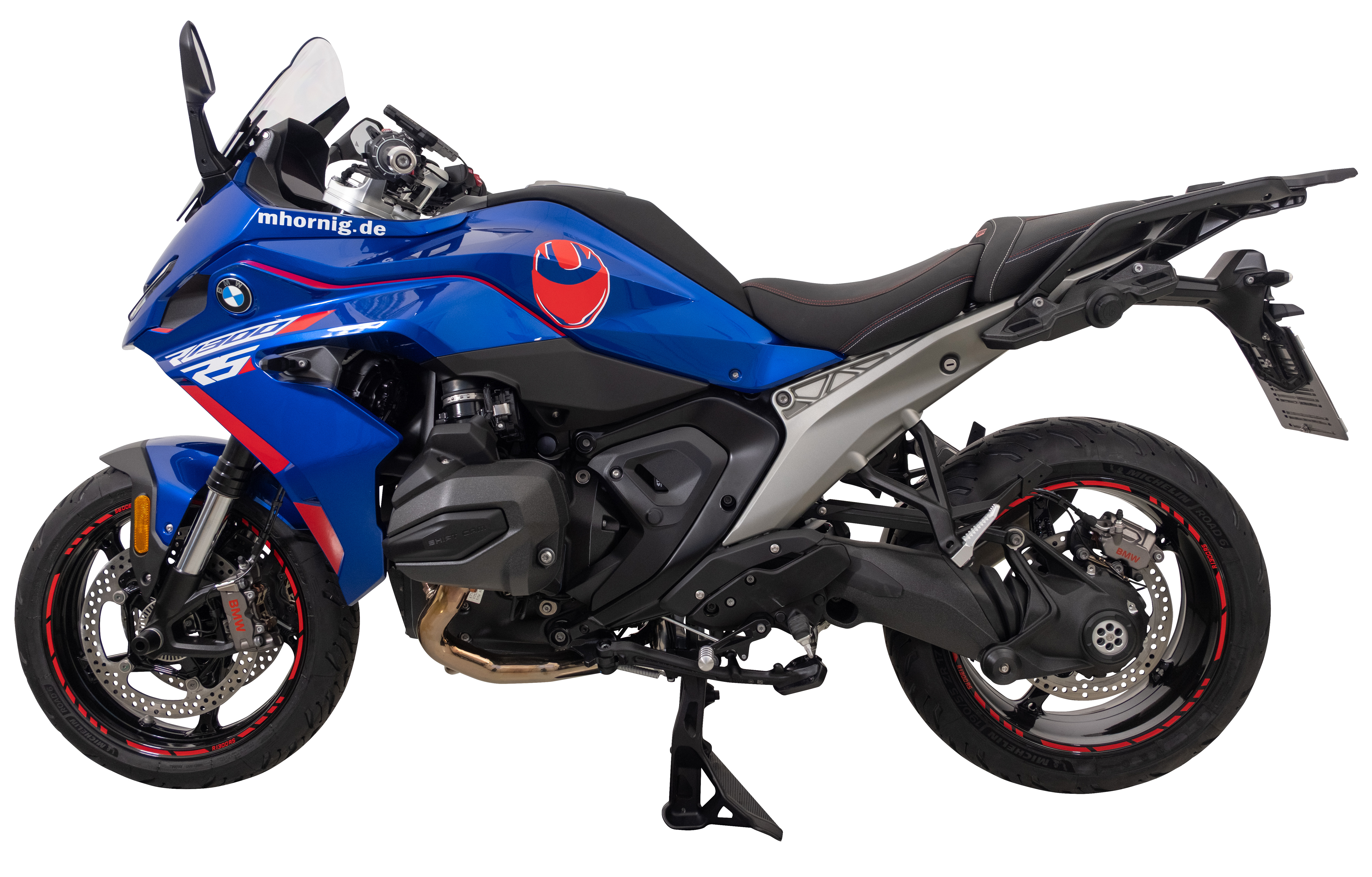 レッド・リムストライプとデコラティブ・ステッカーセットが、外観を完璧に仕上げます。これらはラインや面を効果的に強調し、オリジナルのデザインを損なうことなく、BMW R1300RSに独自の存在感を与えます。